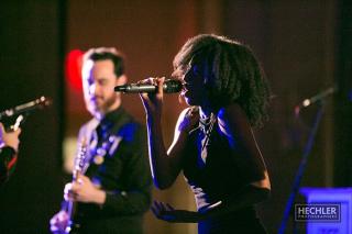 "It was really fun," the bride says. "I changed into my second dress right before the performance and then just beelined right for the stage, went up, sang my song as my reveal of my second outfit."